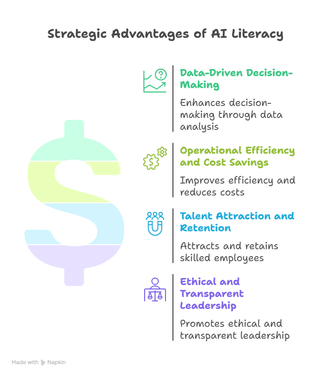 AI-literate leaders drive better decisions, reduce inefficiencies, and build employee trust in AI systems—delivering measurable productivity and innovation gains.